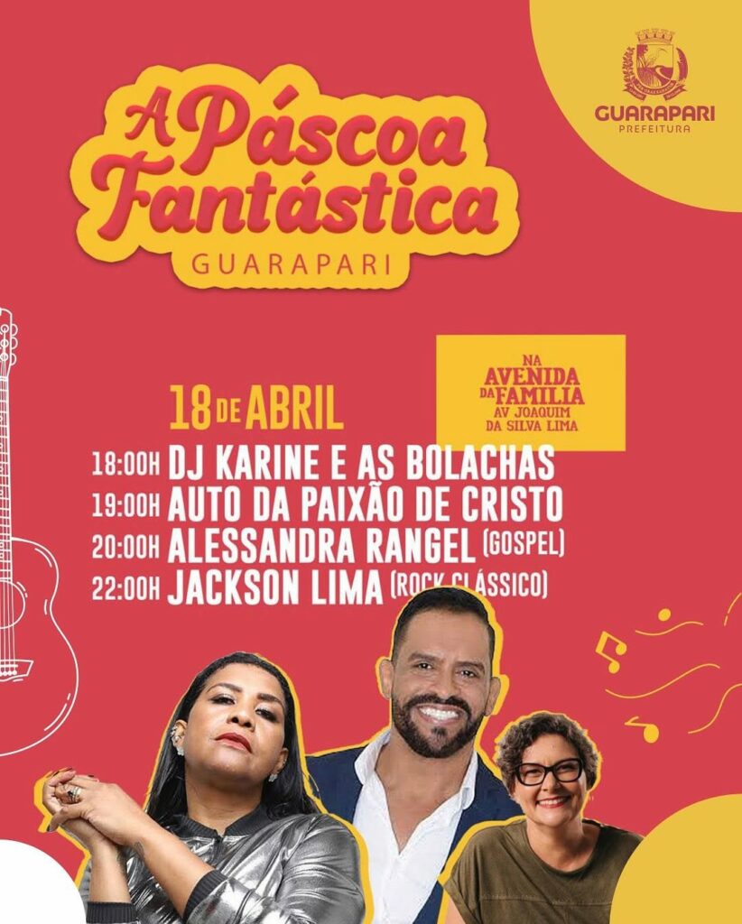 A magia da Páscoa toma conta de Guarapari nesta sexta-feira (18), com uma programação especial na Avenida Joaquim da Silva Lima. A ação faz parte do evento “A Fantástica Páscoa Guarapari”, promovido pela Prefeitura, que une cultura, fé e entretenimento em uma noite repleta de atrações gratuitas para moradores e turistas.