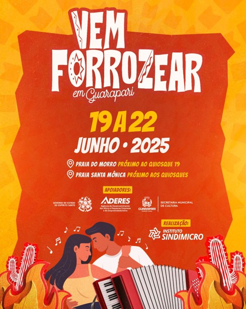 O prefeito Rodrigo Borges também destaca o impacto econômico da iniciativa. “Eventos como o ‘Vem Forrozear’ movimentam a economia, geram oportunidades e promovem integração social. Estamos investindo em cultura com planejamento e responsabilidade, para que Guarapari seja referência também durante o inverno”, declarou.