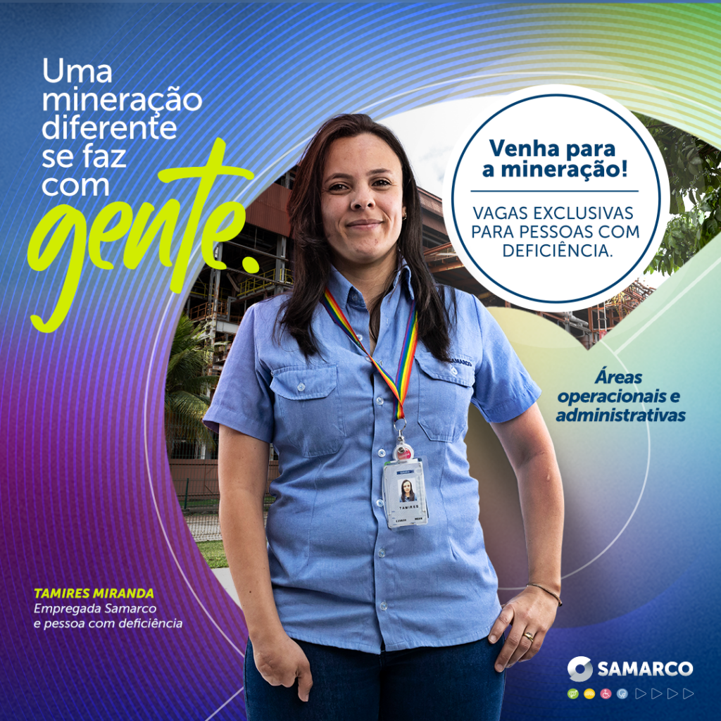 “As vagas têm como objetivo não apenas diversificar o nosso quadro de pessoas, mas também fomentar um ambiente de aprendizado contínuo e de crescimento mútuo. A contratação de pessoas com deficiência reforça o nosso compromisso com a igualdade de oportunidades e é mais uma ação do nosso Programa de DE&I da Samarco”, declarou Adriana Gomes, gerente de Atração e Desenvolvimento.