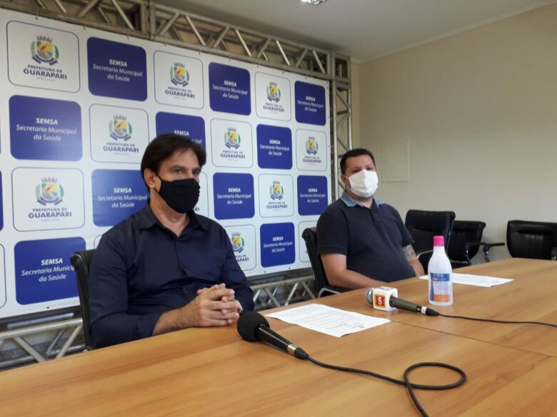 Nesta manhã (04), o prefeito de Guarapari, Edson Magalhães, junto ao secretário Municipal de Postura e Trânsito, Luiz Cardoso, falou sobre o novo decreto de enfrentamento ao coronavírus (Covid-19) durante coletiva de imprensa na prefeitura.