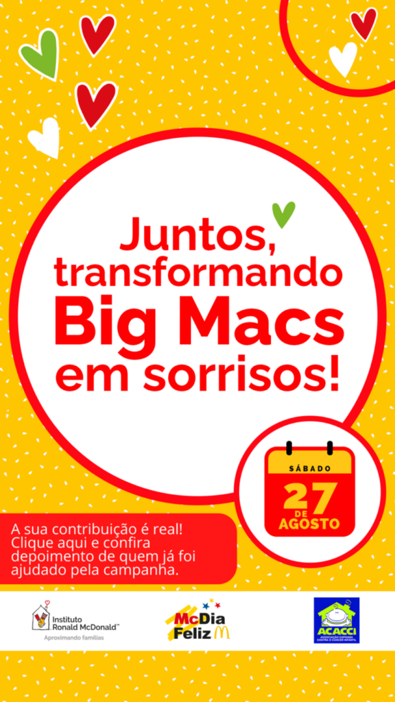 O câncer é a doença que mais mata pessoas entre 1 e 19 anos no Brasil, segundo o Instituto Nacional de Câncer (Inca). Luciene destacou que a campanha é de grande ajuda ao instituto e leva muita alegria para todos os pacientes. “Alguns nunca tiveram a oportunidade de ir a um dos restaurantes McDonalds, e a Acacci oportunizar momentos como este é gratificante. É uma grande festa em prol do bem”.