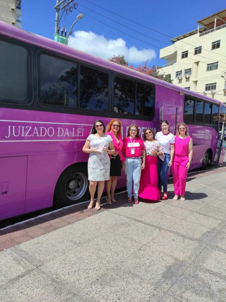 “A gente faz essa parceria com a Prefeitura para poder fazer esse intermédio com o Tribunal e trazer o Ônibus Rosa para a cidade, que também presta o atendimento para vítimas de violência dando orientação, quando necessário, já encaminha para solicitar a medida protetiva ou para a Delegacia da Mulher”.