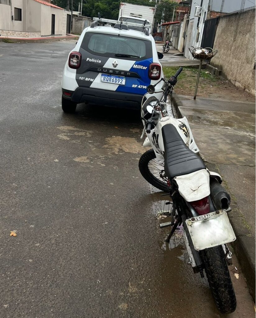 Na manhã de sexta (19) o Centro Integrado Operacional de Defesa Social (CIODES) informou à Polícia Militar que uma moto com restrição de roubo estaria nas imediações do bairro Santa Mônica. O patrulhamento foi então intensificado e a moto encontrada na Av. Águas Marinhas.