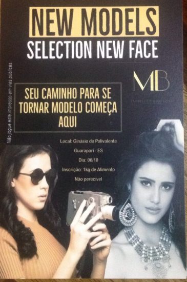 A agência MB Models e Productions realizará no próximo sábado (06) uma seleção para futuros modelos no ginásio do Polivalente, em Guarapari. A seleção acontecerá das 9 às 15h e para participar é preciso levar 1kg de alimento não perecível. Serão escolhidos meninos e meninas com idades acima de 12 anos.