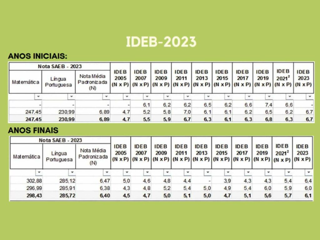 Entre as escolas municipais que participaram do Ideb 2023, destacam-se os resultados das seguintes instituições: