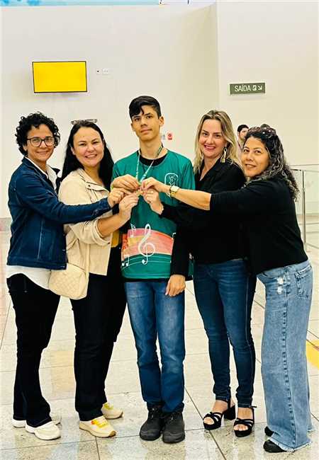 Alfredo Chaves esteve presente representado pelo aluno medalhista, Victor Sant’Anna; a secretária de Educação, Chirley Nascimento; a professora de matemática, Mariza Bona Bonadiman Garcia; a diretora da Escola Ana Araújo, Cibele Bérgami Destéfani Natali e a mãe do aluno.