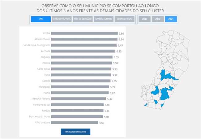 Alfredo Chaves é quarto melhor município, do Estado do Espírito Santo, para realizar negócios. A avaliação é resultado do Indicador de Ambiente de Negócios (IAN) 2021, desenvolvido pelo Instituto de Desenvolvimento Educacional e Industrial do Espírito Santo (IDEIES).
