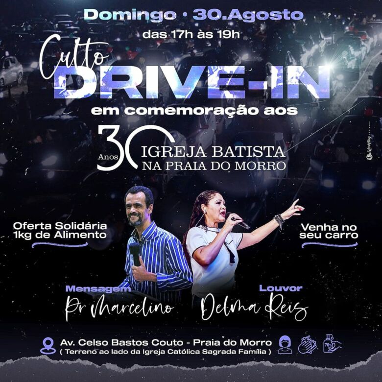 O culto drive-in será realizado na Av. Celso Bastos Couto, na Praia do Morro, no terreno ao lado da Igreja Católica Sagrada Família. No local, será montado um palco com telões, onde irão apresentar-se a cantora Delma Reis e o Pastor Marcelino, para a ministração do culto.