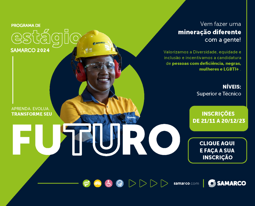 Na última terça-feira (21), a Samarco abriu inscrições para o Programa de Estágio 2024. São mais de 50 vagas para estudantes de nível superior e técnico. A empresa oferecerá bolsa de estágio, auxílio transporte e alimentação nos restaurantes das unidades. A carga horária prevista é de seis horas, de acordo com o turno das aulas de cada estudante e programa de desenvolvimento específico para o grupo.