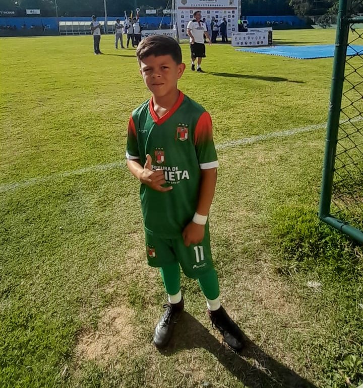 “Desde quando ele tinha 4 aninhos ele já ia para os gramados me acompanhando porque eu também gosto de futebol. Há aproximadamente 1 ano e meio que ele começou a treinar com o treinador Zimar e uns 6 meses que tá com o Aloísio e Igor no projeto de Anchieta, essa foi a primeira competição dele, na copa São José de Anchieta”, disse.