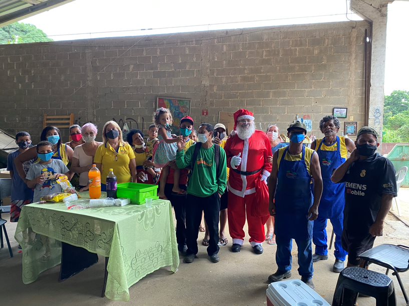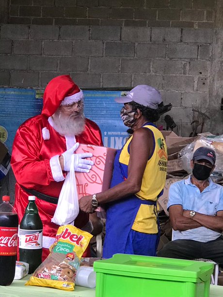 Aposentado, Demétrio de Castro decidiu entrar no personagem do Papai Noel e doar esperança e solidariedade através de cestas de Natal para os 11 catadores da ASSCAMARG , Associação dos Catadores de Materiais Recicláveis de Guarapari, passarem a data com mais fartura junto as famílias.