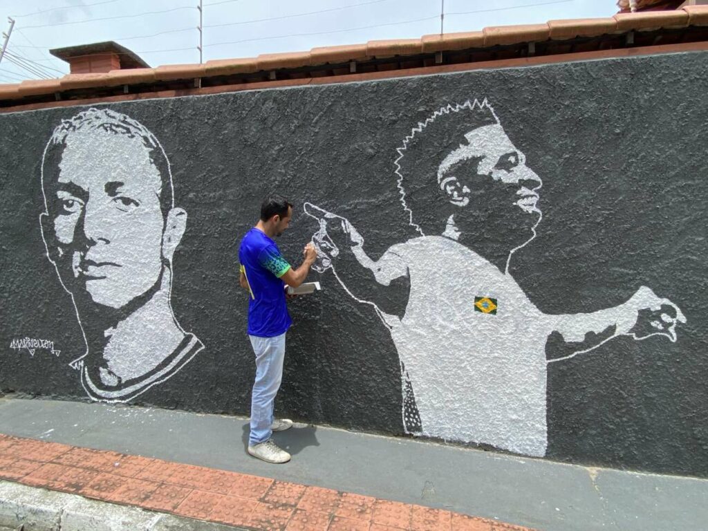 Artista autodidata de Guarapari encanta jogador da seleção com pintura em muro