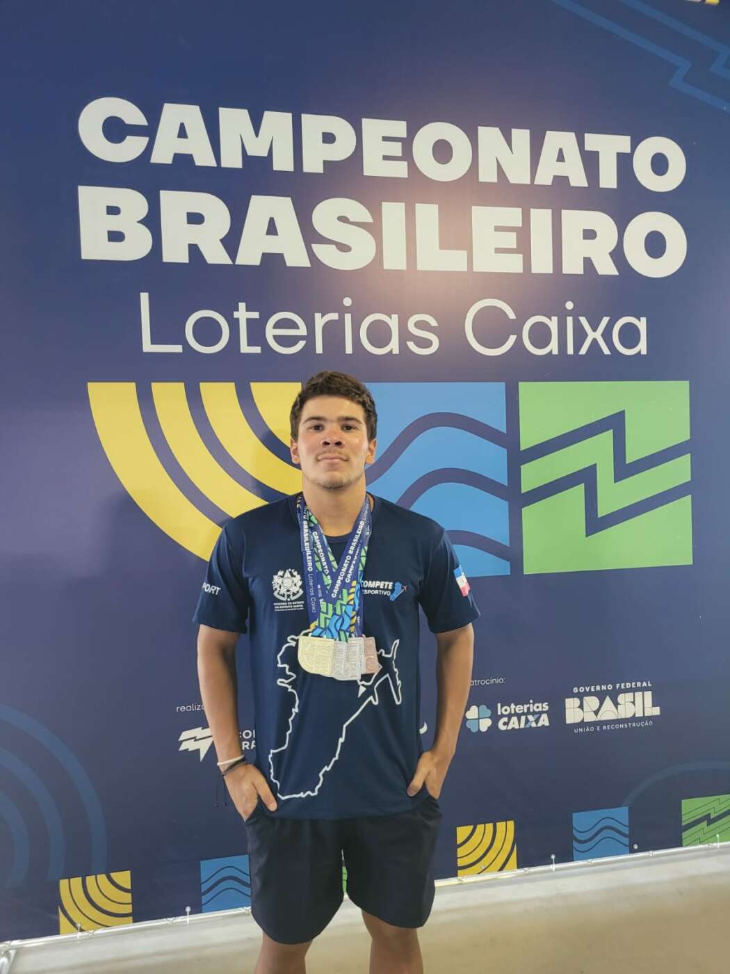 Realizado na semana passada em São Paulo, de quinta-feira (22) à sábado (24), o Campeonato Brasileiro Loterias Caixa de Natação teve como campeão dos 200 metros medley na categoria S12 (visual), o nadador de Guarapari, Breno Braga. Colecionador de medalhas, o atleta ainda ficou em segundo lugar nos 50 metros livre, 100 metros borboleta e 100 metros peito. Ele também foi medalhista de bronze nos 100 metros livre.