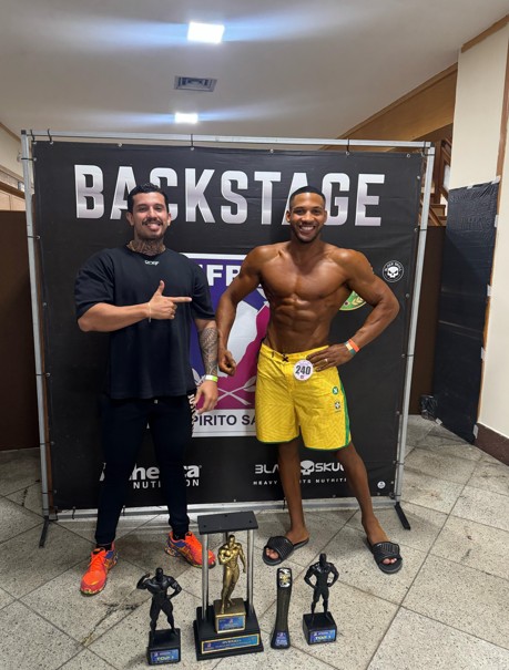 A mudança de modalidade começou em setembro de 2023, quando passou a treinar na academia DNA, em Guarapari. O dono do espaço, Renan Fontana, é também seu coach e parceiro de trajetória. “Eu fiquei interessado e pedi para ele me preparar em julho de 2024. Ele aceitou o desafio e juntos conseguimos conquistar o Top1 na categoria Men’s Phisyque estreante no Mister Capixaba em setembro de 2024”, relembra.