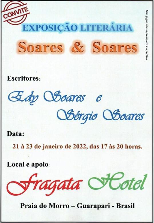 Entre os dias 21 e 23 de janeiro, o Fragata Hotel, na Praia do Morro, realiza uma exposição literária com em que estarão apresentados os trabalhos de dois autores capixabas, Edy Soares e Sérgio Soares. Segundo os organizadores, este é o primeiro evento do que pretende se tornar em um evento maior e anual, expondo o trabalho de outros autores da região.