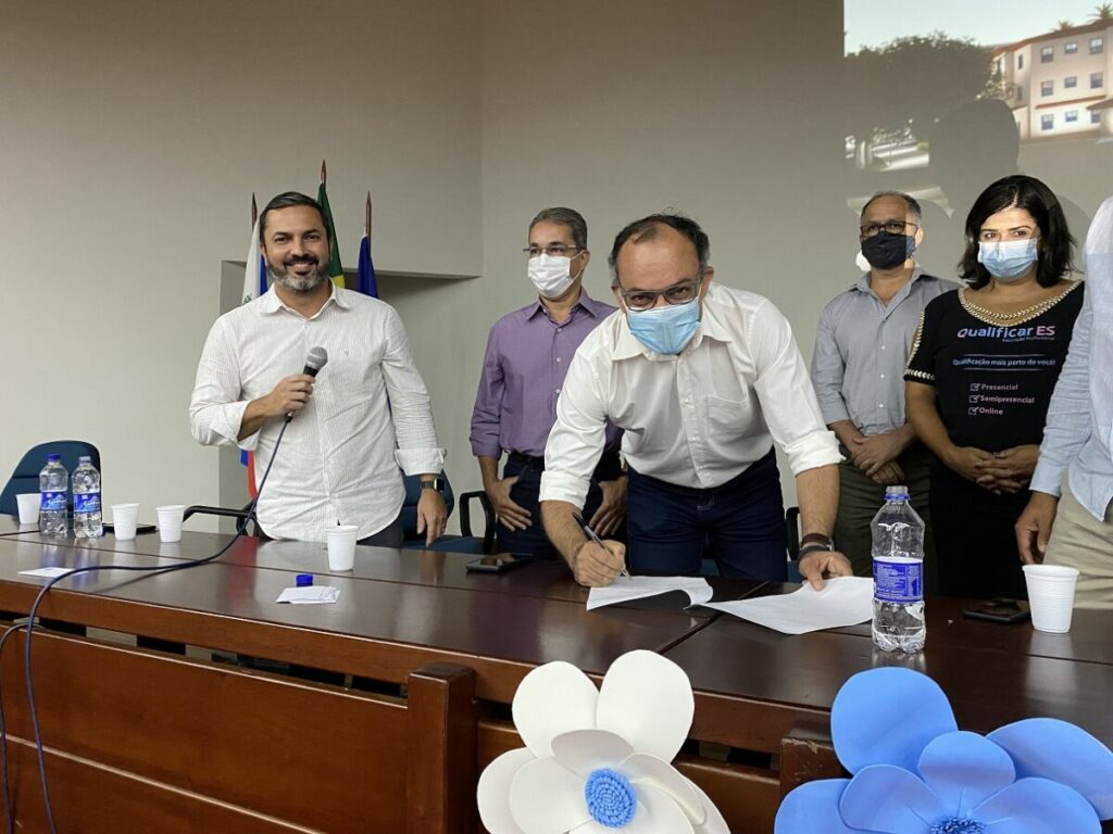 Durante a formatura dos alunos de Guarapari do Programa Qualificar ES, na última sexta-feira (17), o secretário de Inovação e Desenvolvimento do estado do Espírito Santo, Tyago Hoffmann, assinou a ordem de serviço que autoriza o início das obras de restauração e revitalização do Radium Hotel. O espaço dará sede a uma escola técnica e um museu, voltados para o turismo e sua história em Guarapari.