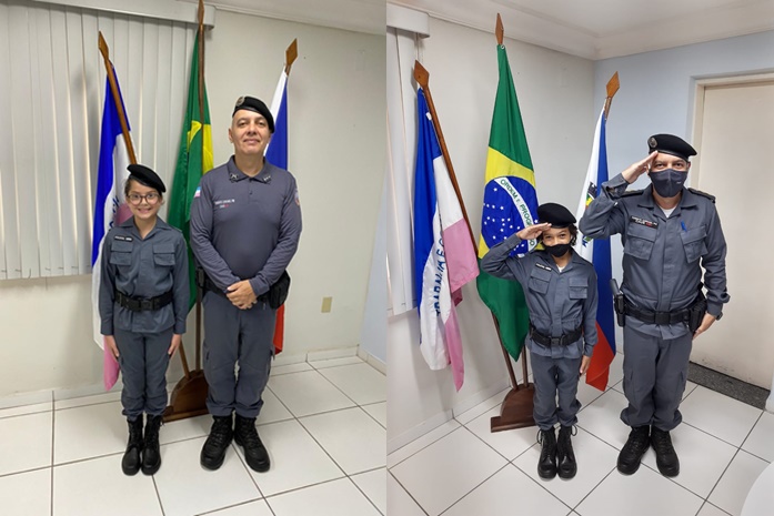 Na semana do Dia das Crianças, Alícia, de 11 anos, que reside em Minas Gerais, aproveitou a visita em família ao município de Guarapari para conhecer o 10° Batalhão. Após ser recepcionada pela capitã Clícia, a menina vestiu a farda de policial mirim e surpreendeu a todos ao canta.