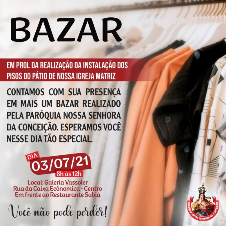 A Paróquia Nossa Senhora da Conceição realiza neste sábado (03) um bazar que vai arrecadar recursos que serão revertidos para a reforma da Igreja.