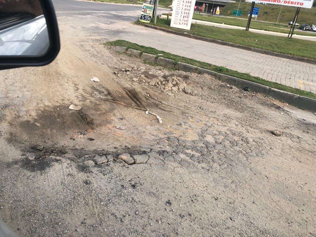 Atualmente, o motivo são dois buracos localizados na saída da rodoviária. Segundo o relato de uma moradora e de um motorista de aplicativo, são dois buracos próximos e não é possível passar pelo local sem cair em pelo menos um deles.