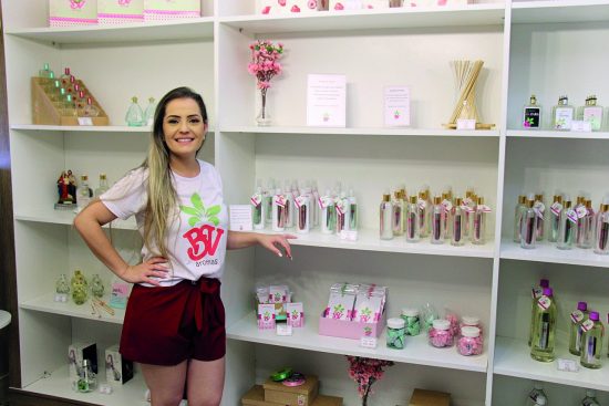 BV: O perfume similar ao importado é o carro chefe da loja. Mas temos aromas para perfumar ambientes de diversas formas – difusores, spray, pingentes de carro e guarda-roupas, aromatizadores elétricos, finalizador de pisos e sachês –, sabonetes, sais de banho, buchas, incensos, antimofo, trabalho também com uma linha de viagem e itens de decoração para compor com alguns desses produtos.