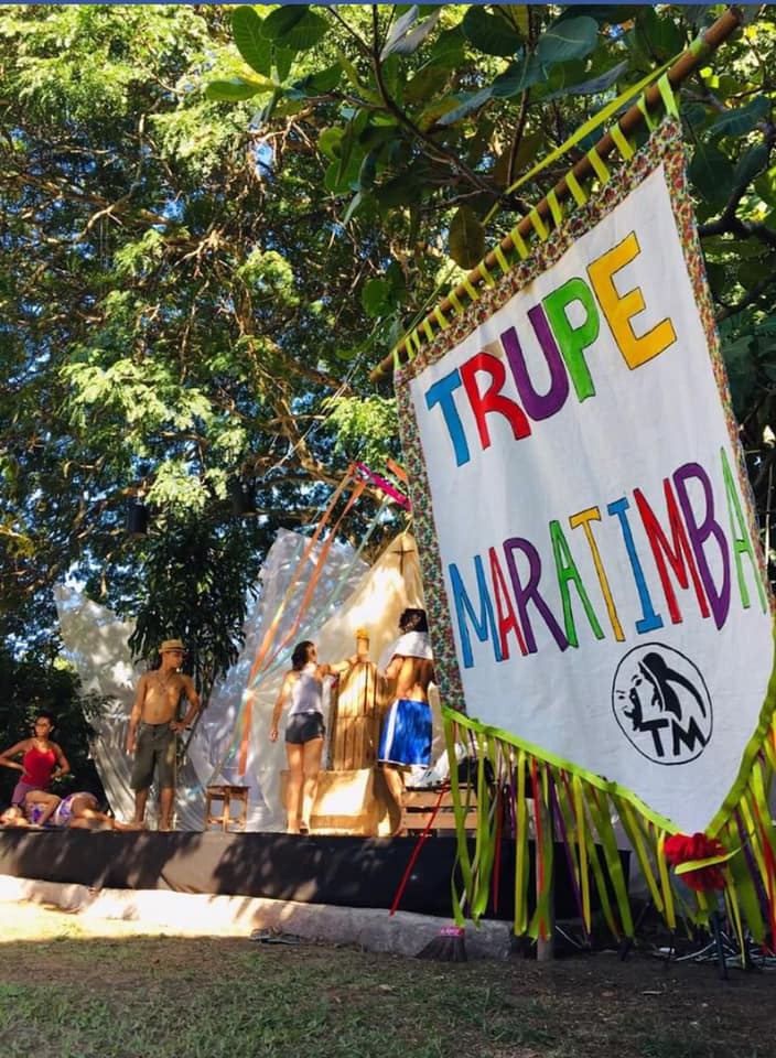 Na ausência do teatro municipal, a Trupe Maratimba realiza peças teatrais em espaços alternativos, assim surgiu o “teatro de quintal”. Foto: Arquivo Pessoal