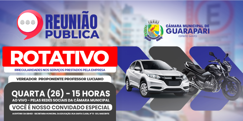 Estarão presentes vereadores e autoridades responsáveis pela Secretaria de Postura e Trânsito (Septran), o procurador geral e o supervisor do Instituto Estadual de Proteção e Defesa do Consumidor (Procon). A reunião será aberta ao público e contará com a transmissão ao vivo do evento, realizada através das redes sociais da Câmara de Guarapari, como o instagram, e do canal de televisão local.