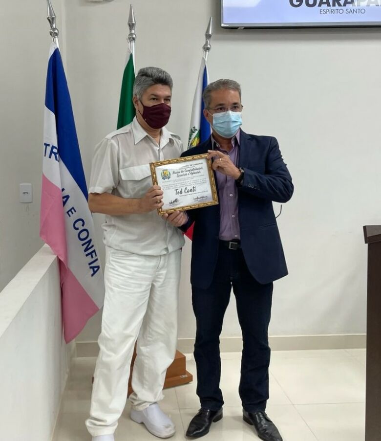Em seu pronunciamento em plenário, Ted Conti se mostrou muito grato com a honraria concedida pela CMG e ressaltou a conquista histórica da Mesa Diretora e de todos os demais vereadores do Poder Legislativo de Guarapari que, por meio de um esforço integrado, elevaram a Casa ao 1º lugar geral no ranking estadual de transparência do Tribunal de Contas do Espírito Santo.
