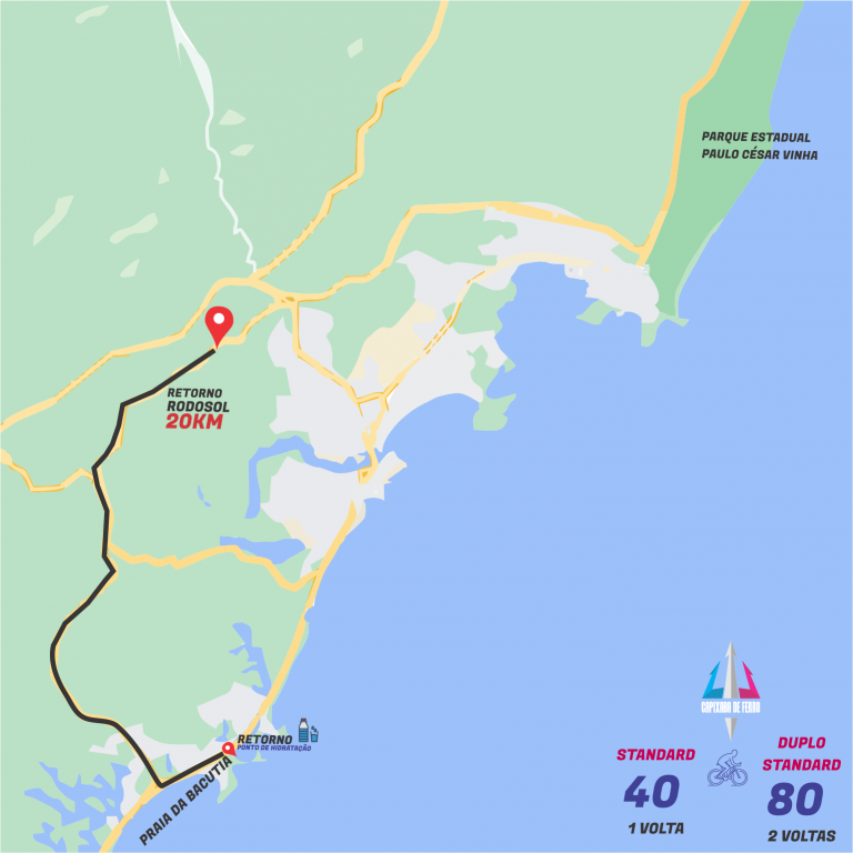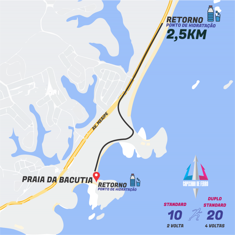 As largadas acontecem na Praia de Bacutia. No triathlon, após a corrida os atletas devem percorrer um circuito de ciclismo na Rodovia do Sol, sentido Vila Velha. A prova termina com um percurso de corrida com voltas de 5km passando pelas praias da Peracanga, Guaibura e Riacho.