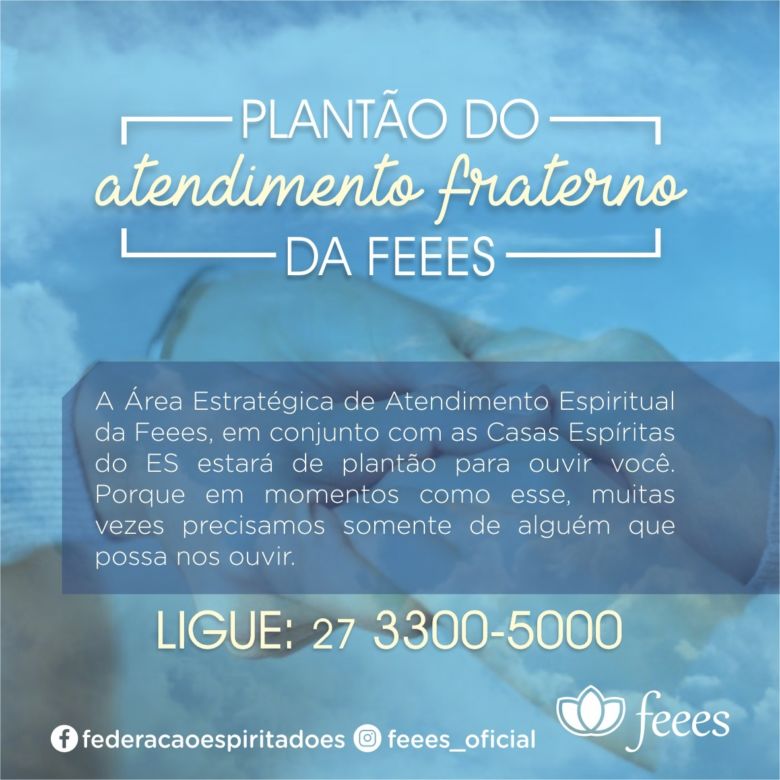 Durante o período de isolamento social em decorrência da pandemia do novo coronavírus (Covid-19), muitas pessoas diagnosticadas com doenças psicológicas tiveram o quadro agravado e outras passaram a sofrer de depressão e ansiedade. Pensando em um modo de continuar oferecendo amparo a essas pessoas apesar da suspensão das atividades presenciais, no dia 10 de maio, a Federação Espírita do Estado do Espírito Santo (FEEES) deu início ao atendimento fraterno online. O serviço é um canal de escuta, que conta com mais de 40 atendentes preparados para oferecer apoio, e não tem por objetivo substituir o atendimento psicológico ou psiquiátrico e sim complementá-lo.