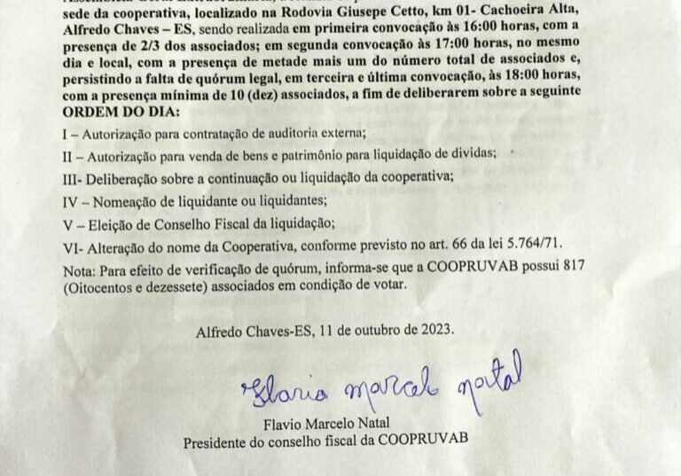 Edital Eleição Associação de Moradores da Praia do Morro