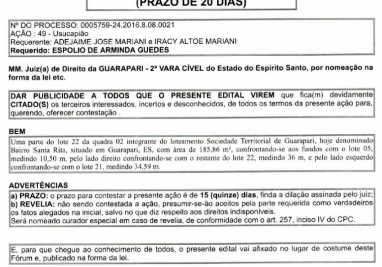 Edital de Citação Prazo de 30 Dias (art. 259 do NCPC)