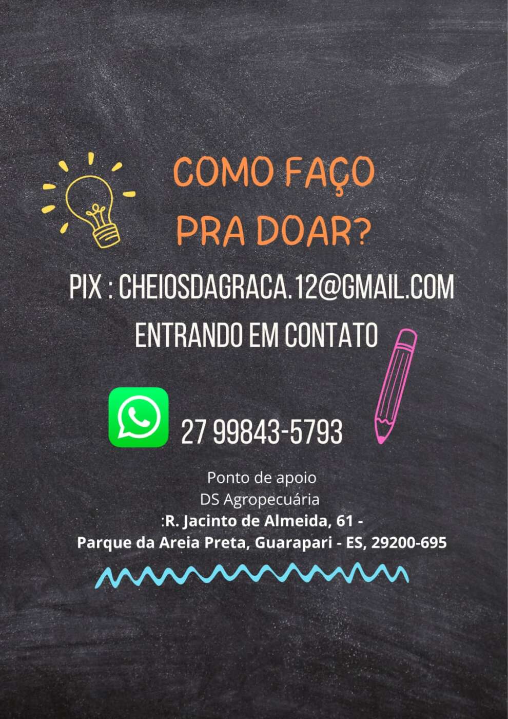 A campanha disponibiliza a lista de material, que inclui cadernos, apontador, lápis, caneta, borracha, cola e mochila. Os interessados em doar podem fazer um Pix para: cheiosdagraç[email protected] ou entrar em contato através do WhatsApp (27) 99843-5793.