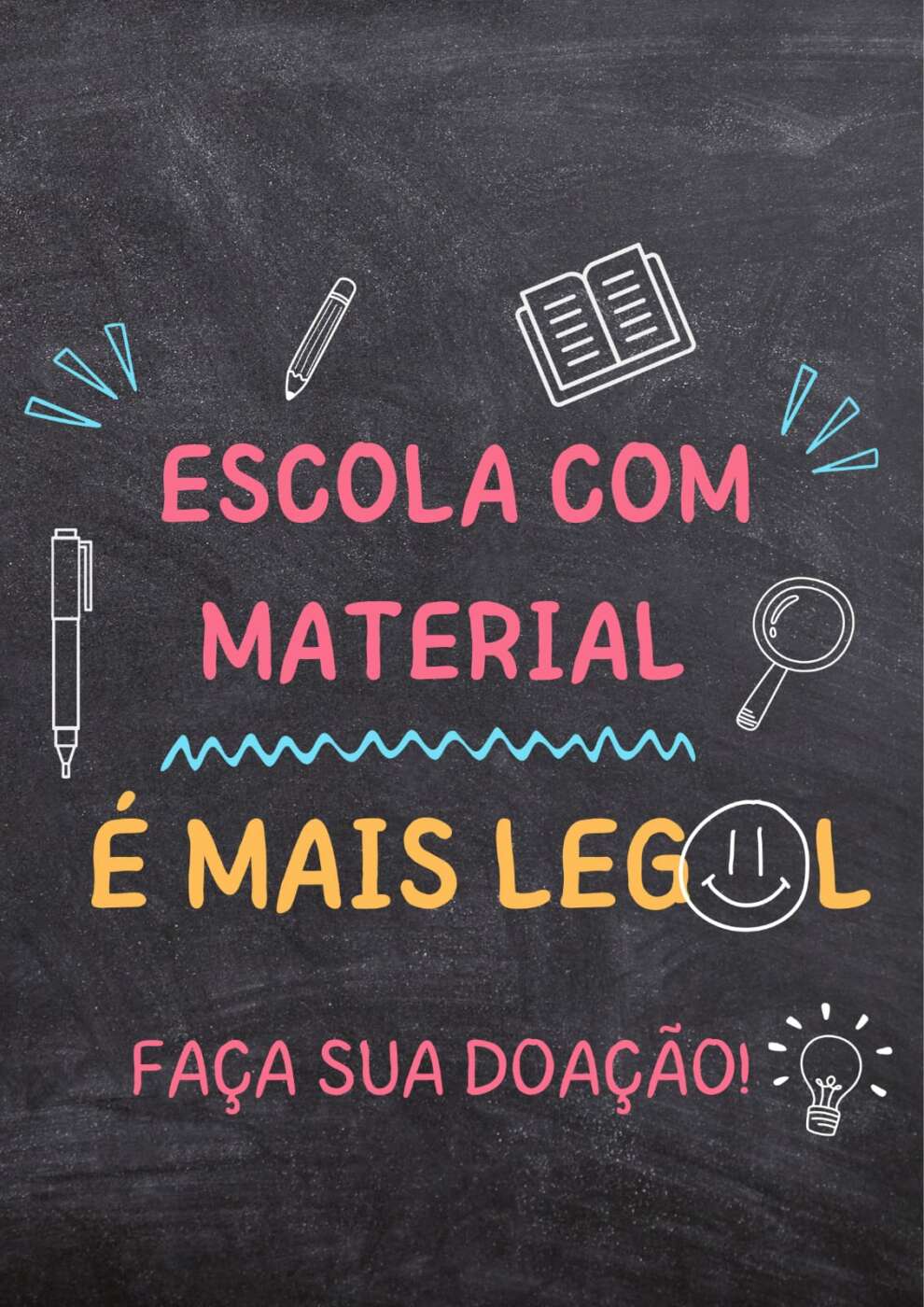 Realizada anualmente desde 2019 pelo grupo de voluntários “Cheios da Graça”, a campanha “Escola com Material é mais legal” tem o objetivo de arrecadar material escolar novo para crianças carentes assistidas pelo grupo. “O projeto nasceu de experiências vividas nas periferias, por meio de casos que talvez muitos possam duvidar que existam”, descreveu Nycole Sabino, integrante do “Cheios da Graça”.