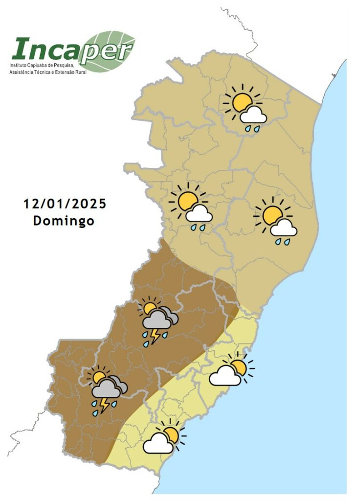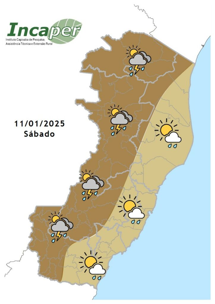 Após os temporais que têm atingido o Espírito Santo nos últimos dias, o tempo deve seguir instável em Guarapari e em todo o Estado durante o fim de semana, mas o volume de chuva tende a diminuir. De acordo com o Instituto Capixaba de Pesquisa, Assistência Técnica e Extensão Rural (Incaper), apesar da instabilidade, o sol deve aparecer entre nuvens neste sábado (11) e domingo (12).