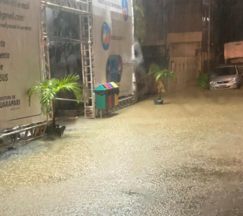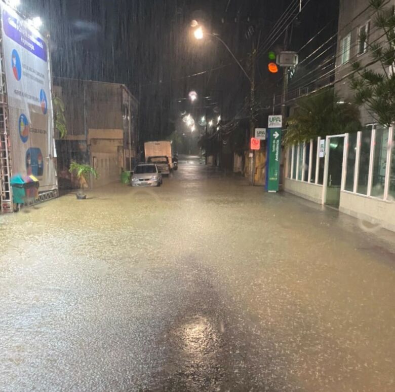 A chuva que se iniciou na noite dessa sexta-feira (7) criou diversos pontos de alagamentos em Guarapari. Um deles foi a Rua Cachoeiro do Itapemirim, no bairro Ipiranga, que dá acesso à Unidade de Pronto Atendimento de Guarapari (UPA 24h).