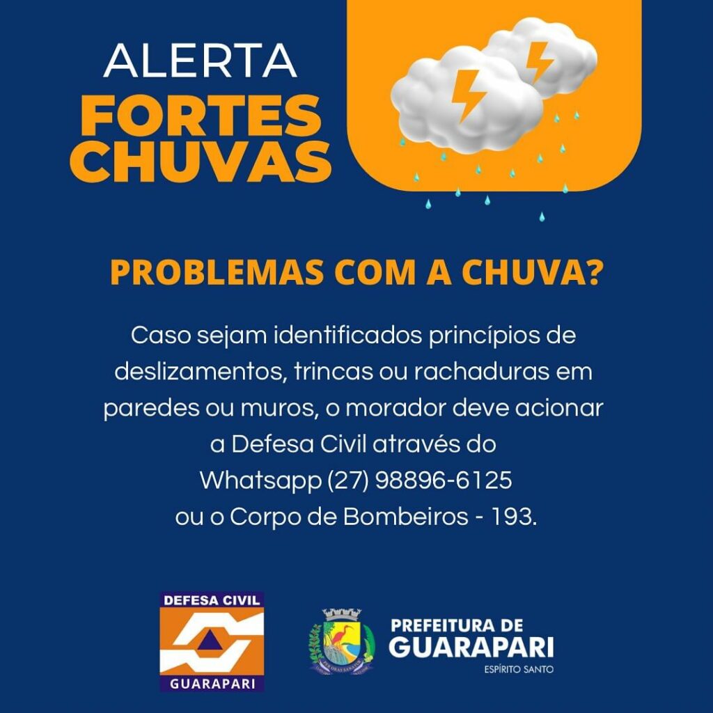 Por meio das redes sociais, a Prefeitura de Guarapari divulgou orientações para a população. Caso os moradores identifiquem sinais de deslizamentos, como trincas ou rachaduras em paredes/muros, devem acionar imediatamente a Defesa Civil pelo WhatsApp (27) 98896-6125 ou o Corpo de Bombeiros pelo número 193.