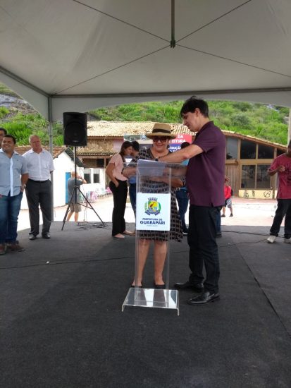 Prefeito Edson Magalhães e a presidente da Associação de Moradores da Praia do Morro Fátima Fonseca.