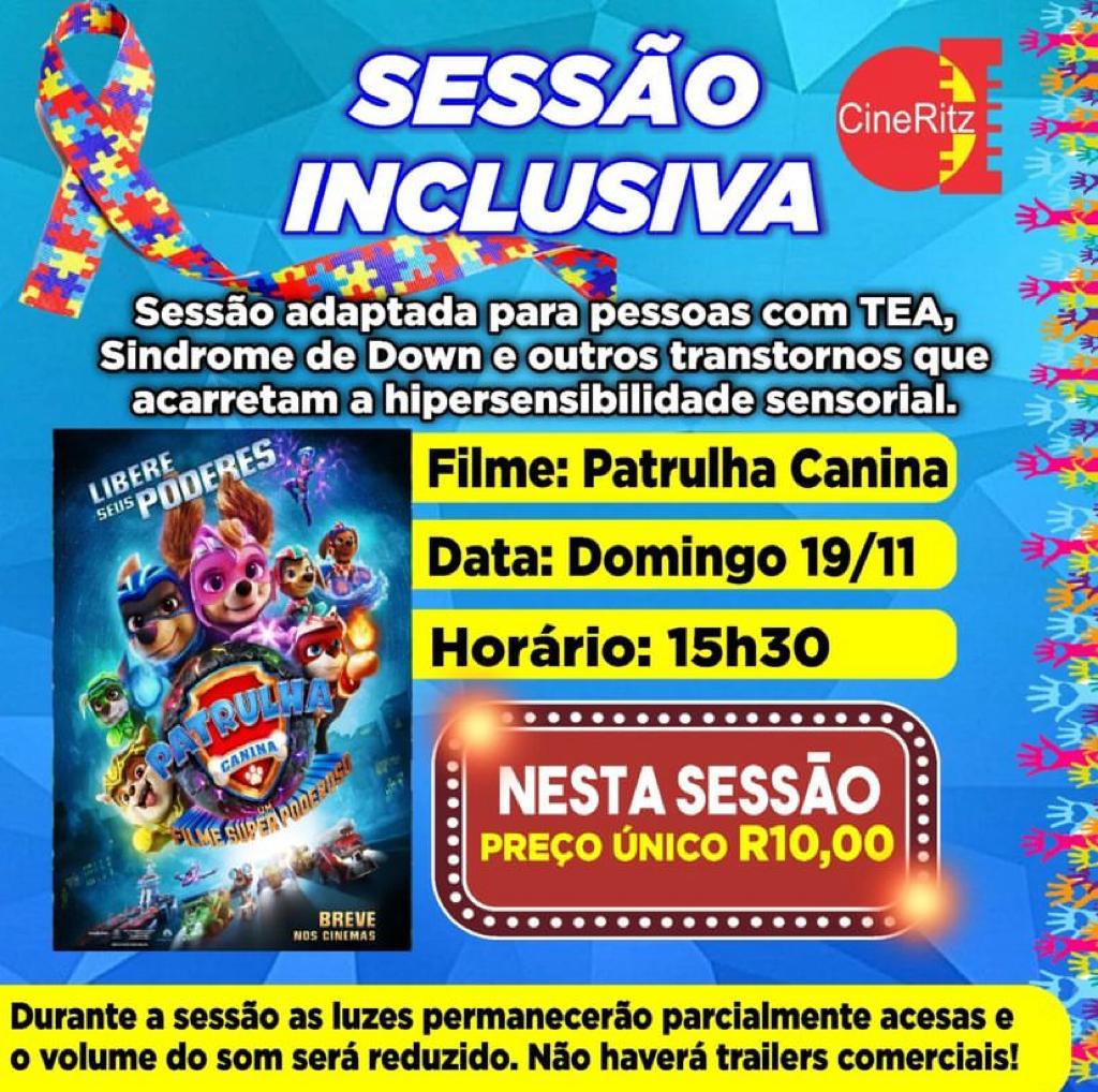 A exibição acontecerá amanhã (19), às 15h30, com o filme Patrulha Canina