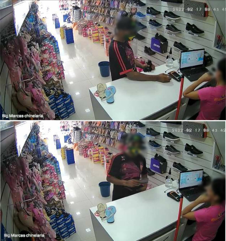 Ainda de acordo com o delegado, o suspeito disse que não usava arma de fogo, mas as imagens das câmeras de vídeo monitoramento mostram o contrário.