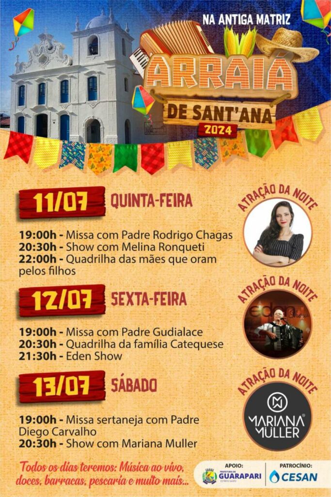 A Igreja Antiga Matriz, no Centro de Guarapari, recebe a partir desta quinta-feira (11), às 19h, o tradicional Arraiá Sant’ana. A festa vai contar com atrações musicais, barraquinhas e quadrilha junina.
