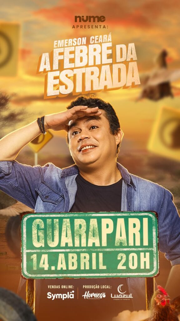 “A Febre da Estrada”, novo show do comediante Emerson Ceará, será apresentado no Centro de Eventos Luazul, em Guarapari, no dia 14 de abril.