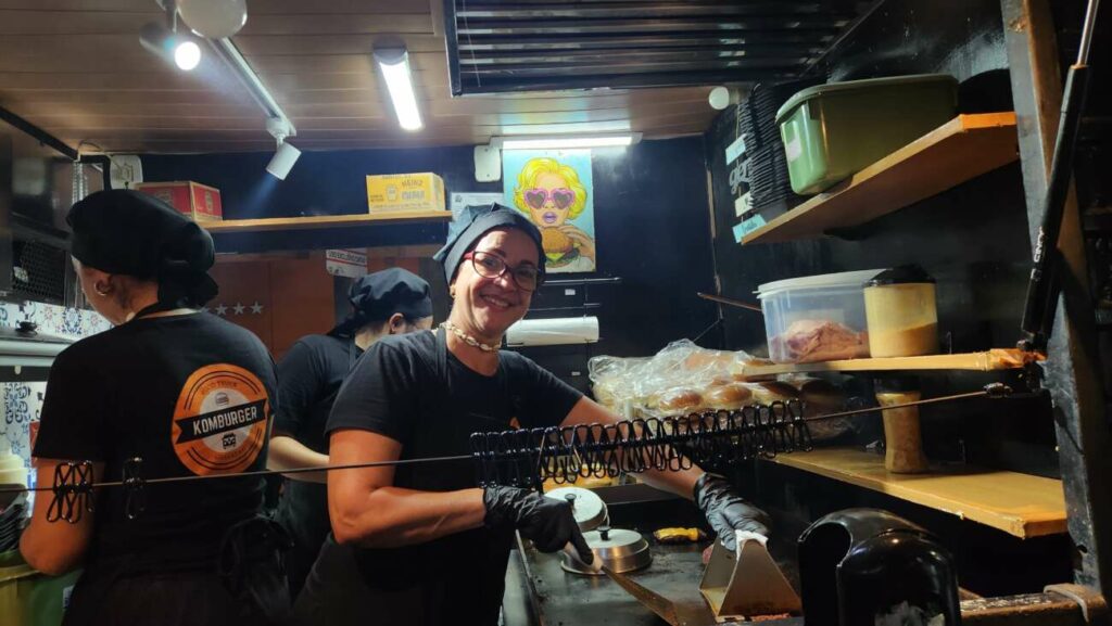 A empreendedora Andreia Neri participa pela terceira vez do Esquina da Cultura com sua Komburger. Para ela, o movimento estava “maravilhoso” para o primeiro dia. “Somos moradores de Guarapari e ficamos muito felizes quando acontece um evento na cidade, e o Esquina da Cultura é um marco. Além de ajudar os empreendedores também gera empregos nesse período. A organização está de parabéns e o evento é maravilhoso.”