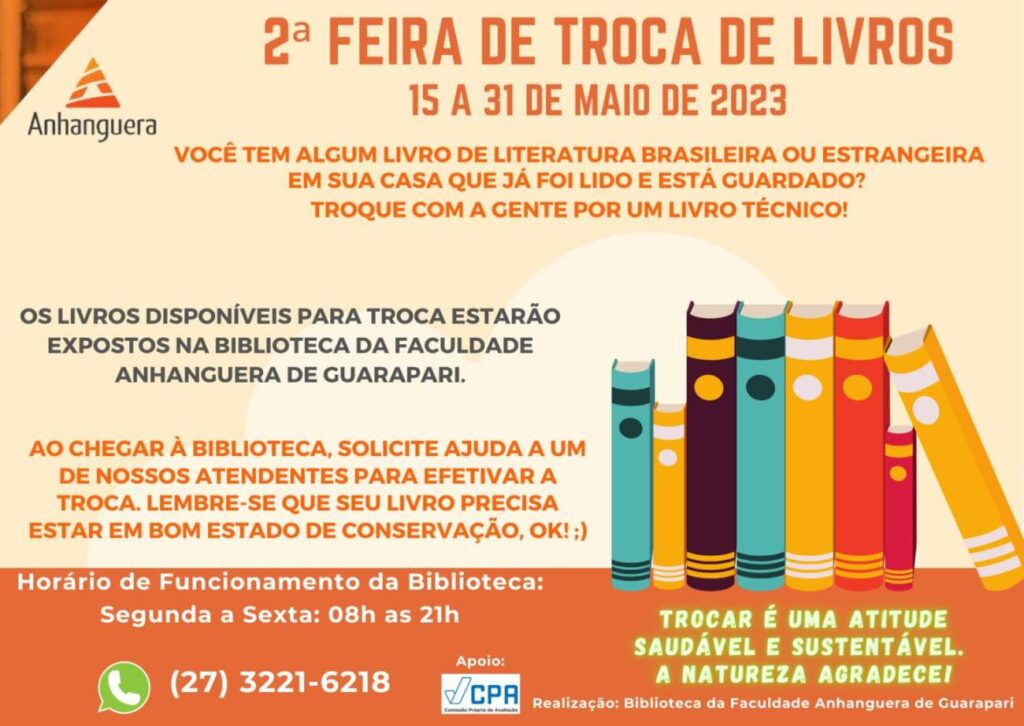 A Faculdade Anhanguera de Guarapari retomou neste ano um projeto incentivador que fez bastante sucesso há alguns anos. Criada em 2019, a Feira de Troca de Livros ganhou uma nova edição este mês.