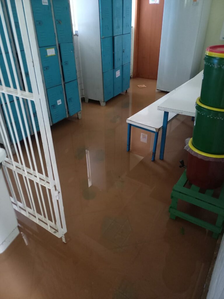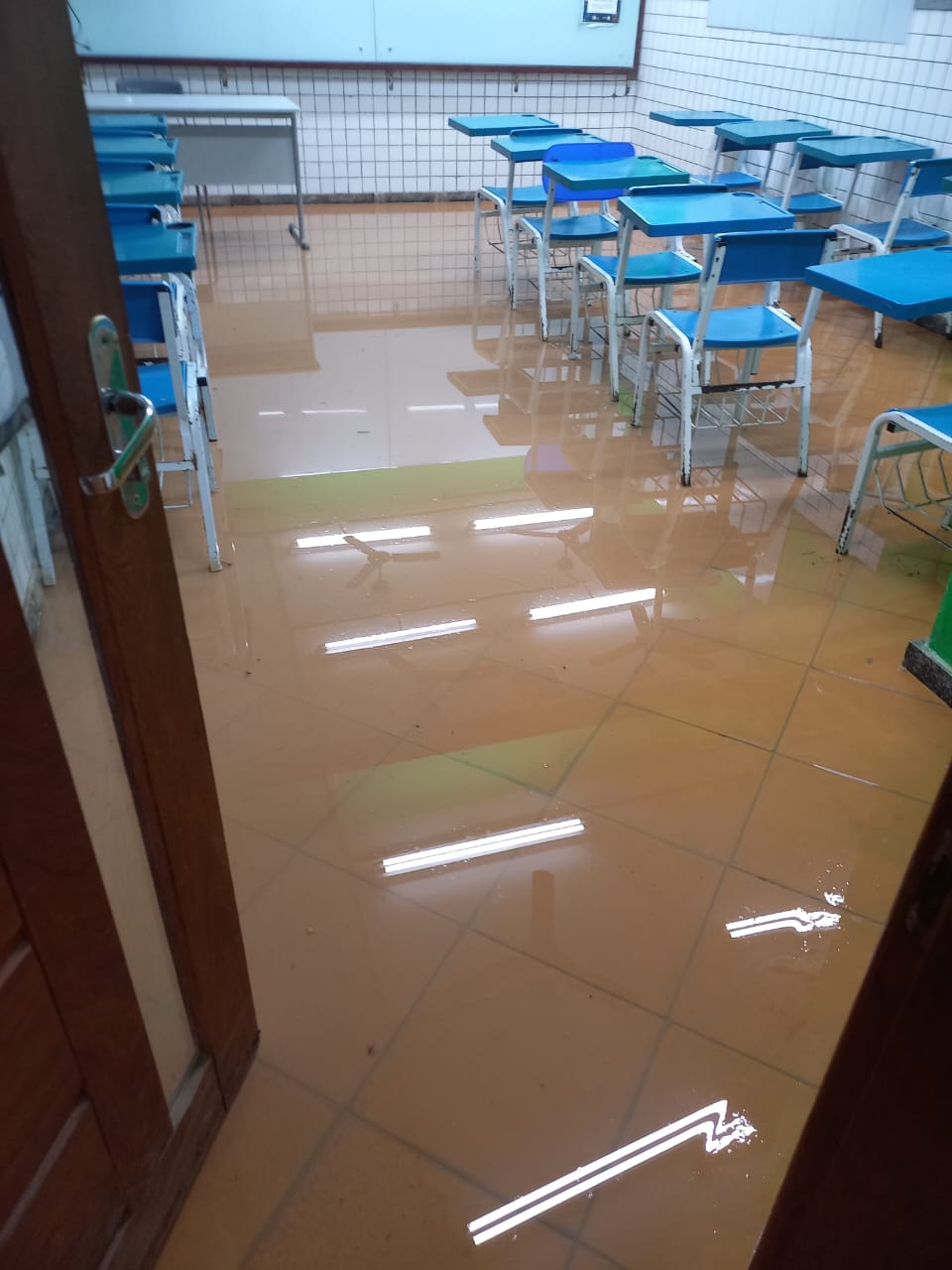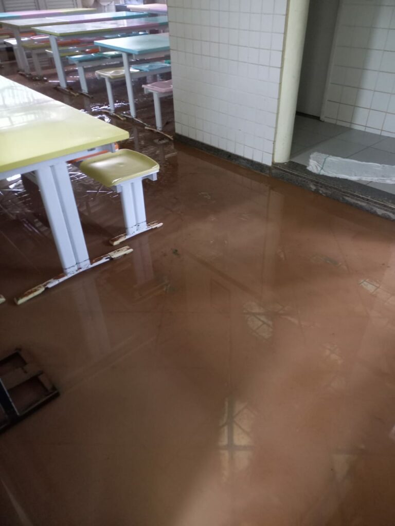 Ela também relatou que a SEDU – Secretaria Estadual da Educação iria enviar nesta segunda-feira uma equipe de limpeza para organizar a parte atrás da escola. “O local é mais baixo e foi tomado pela água”.