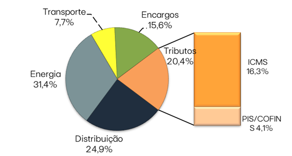 - 39,1% se referem a custos dos segmentos de geração e transmissão de energia;
