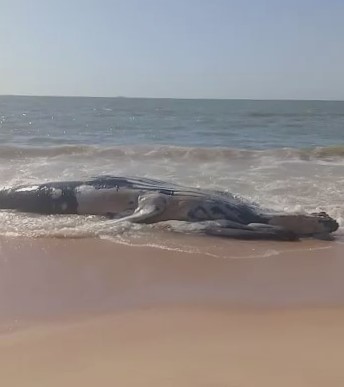 Animal, que pesa cerca de 20 toneladas e mede, aproximadamente 8 metros, encalhou na Praia do Riacho