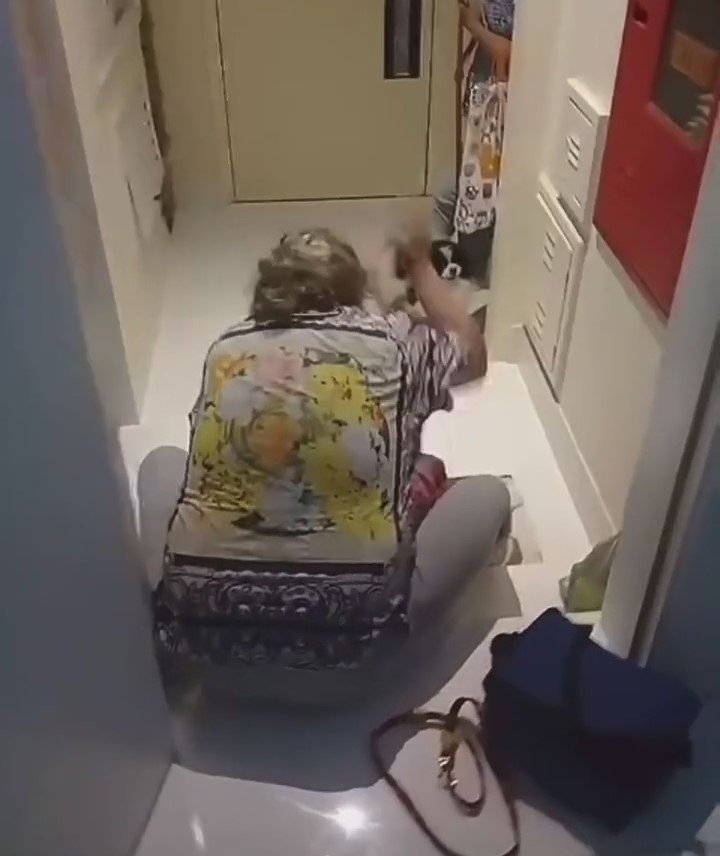 No vídeo uma outra mulher com um cachorro assiste a cena, além da pessoa que filma. No final é possível ouvir uma das pessoas falar “Não estou aguentando mais não”.