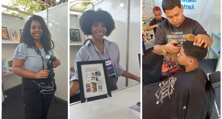 “Pelo LabPoca, participamos da Bendita Feira e, na primeira edição no nosso território, uma pessoa da Aderes me falou da importância de abrir um MEI. Fiquei com medo de perder o benefício do Bolsa Família, mas fiz. Hoje, estou trabalhando aqui na Feira das Juventudes Empreendedoras e, por conta disso, já prestei serviço para o próprio CRJ fazendo fotos dos jovens”, afirmou Elieni Veloso.