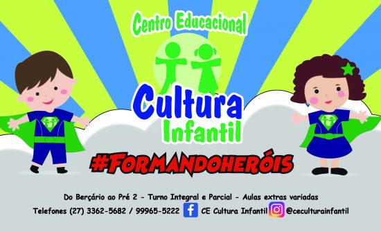 O Centro Educacional Cultura Infantil oferece turmas do berçário ao pré 2, nos turnos integral, parcial e ampliado, com um trabalho intensivo no estímulo ao raciocínio lógico, a imaginação, as habilidades motoras, a consciência ecológica e o pensamento crítico, contribuindo para o desenvolvimento físico, intelectual e emocional da criança.