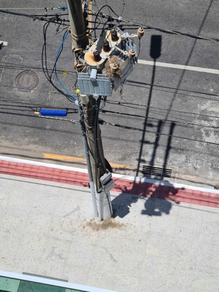 O síndico e morador do Edifício Albernaz, Praia do Morro, vem solicitando a EDP Espírito Santo, empresa brasileira de distribuição de energia elétrica que opera no Estado, há cerca de dois meses, a troca do transformador que fica em um poste em cima da calçada do prédio.